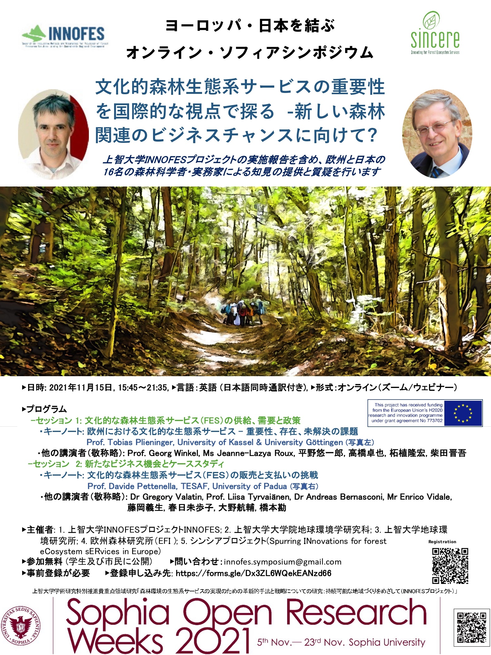 上智大学は、11月15日(月)午後3時45分からオンラインシンポジウム「文化的森林生態系サービスの重要性を国際的な視点で探る―新しい森林関連のビジネスチャンスに向けて―」を開催する(Zoomを使用)。欧州と日本の16名の森林科学者や実務家が森林の利活用に関する最新の知見を提供する。使用言語は英語(日本語同時通訳付き)。参加可能人数1,000名。参加費無料(要事前申し込み)。→詳しくは、こちら
